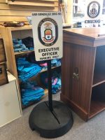 THESE PARKING SIGNS INCLUDE THE SIGN, POLE, AND 60LB RUBBER WEIGHTED BASE WITH WHEELS. PERFECT FOR THE PIER!