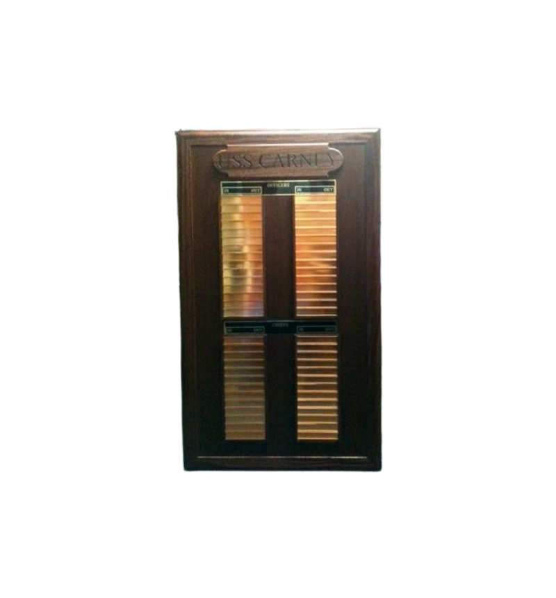 Custom in/out boards. Here are just a few examples. Please email or call us to discuss pricing and design options. You can add laser cut lettering, stainless steel lettering, carved header boards, full color vinyl logos, machine carved logos, warfare’s, sliders for name plates, engraved plates, the works!