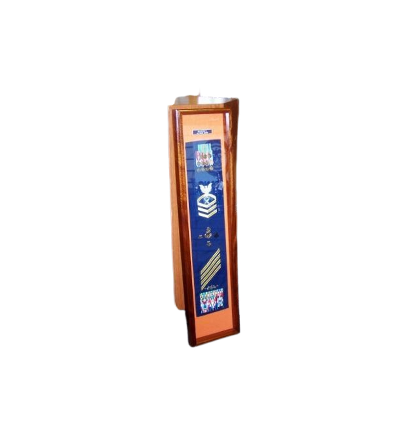 40″L X 16″ WIDE, BOX IS JUST BIG ENOUGH! PLEAE NOTE THERE IS NO FLAG IN THIS BOX, BUT A FLAG TRIANGLE TO HOLD A 2′ X3′ FLAG CAN BE INSEDTED IN THE TOP BOTTOM OR IN THE CORNER. ORANGE FELT ON THIS ONE TO HONOR A COAST GURAD RETIREE, TELL US WHAT COLOR YOU PREFER. THE WOOD ON THIS BOX IS MAHOGANY, YOU CAN CHOOSE, CHERRY, OAK OR MAHOGANY