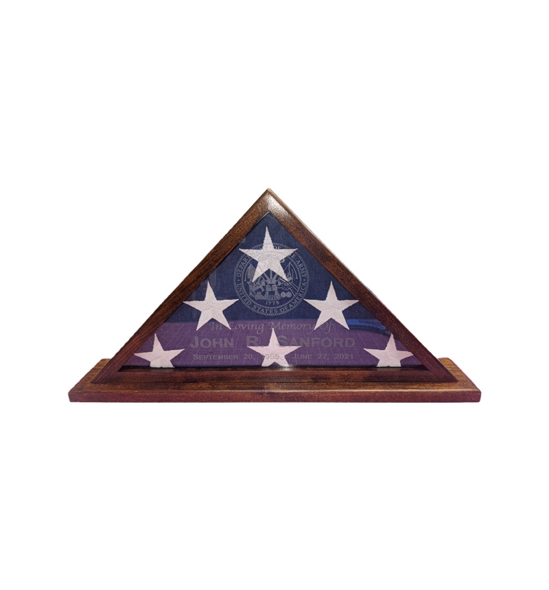 THIS FLAG CASE IS A BEAUTIFUL MEMORIAL GIFT. GLASS ENGRAVING IS INCLUDED IN THIS PRICE- IT IS $250 WITHOUT ENGRAVING. PLEASE ALLOW 2-3 WEEKS FOR BUILD AND ENGRAVING.