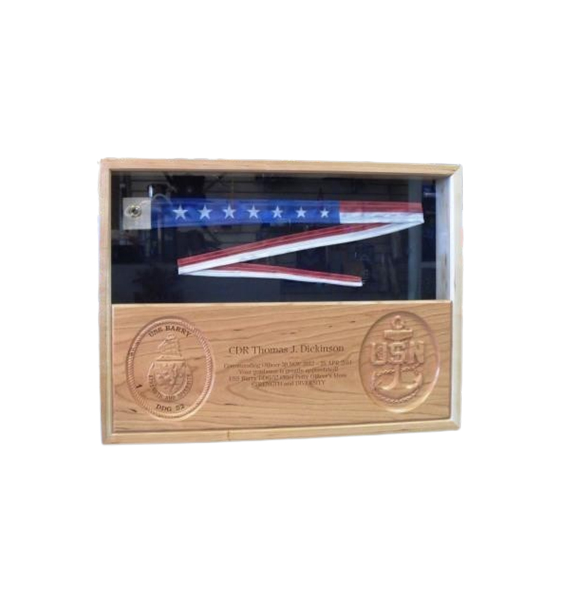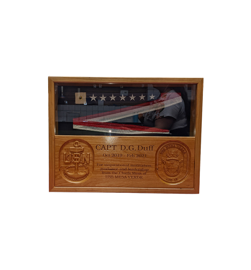 Taking it to a new level! Machine cut and engraved pennant box. Please send command logo and engraving information to sales@seabag2.com