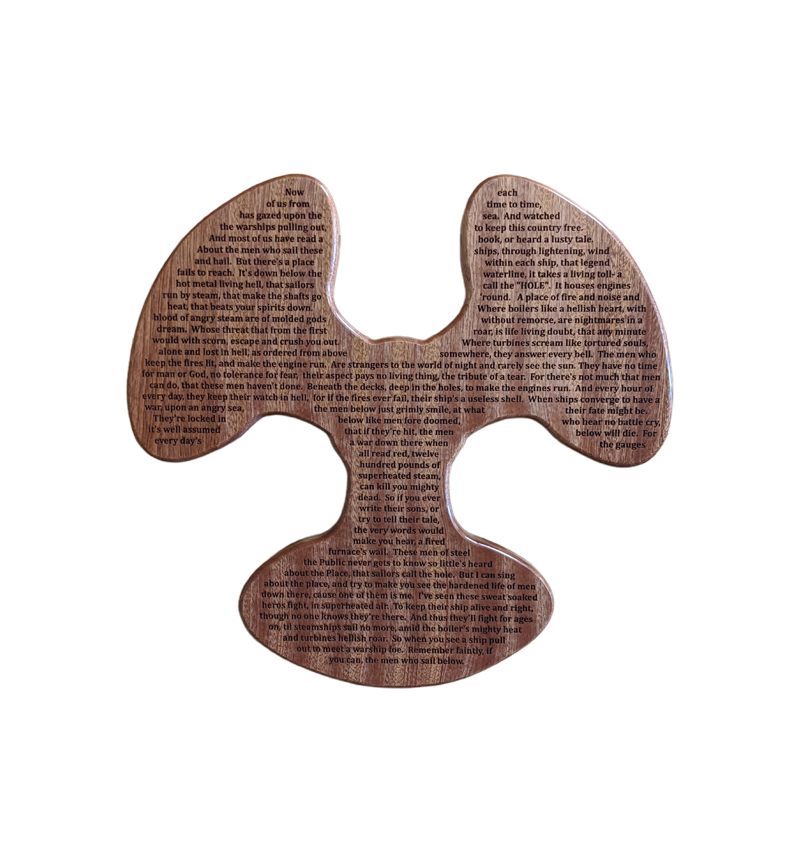 16″ MACHINE CUT MAHOGANY MACHINIST MATE PROP WITH SNIPES LAMENT LASER ENGRAVED, CAN BE PERSONALIZED