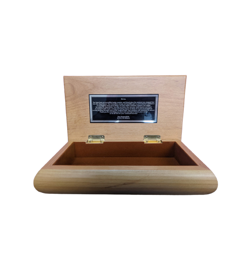 GORGEOUS NATURAL RED ALDER WOOD TRINKET BOX TO PUT YOUR COLLAR DEVICES, BELTB UCKLES, JEWELRY, OR ANYTHING ELSE INSIDE! (ITEMS SUGGESTED ARE NOT INCLUDED) YOU CAN PERSONALIZE THE LID AND EVEN ADD AN ENGRAVED PLATE INSIDE! ALL FOR THE INCLUDED PRICE!