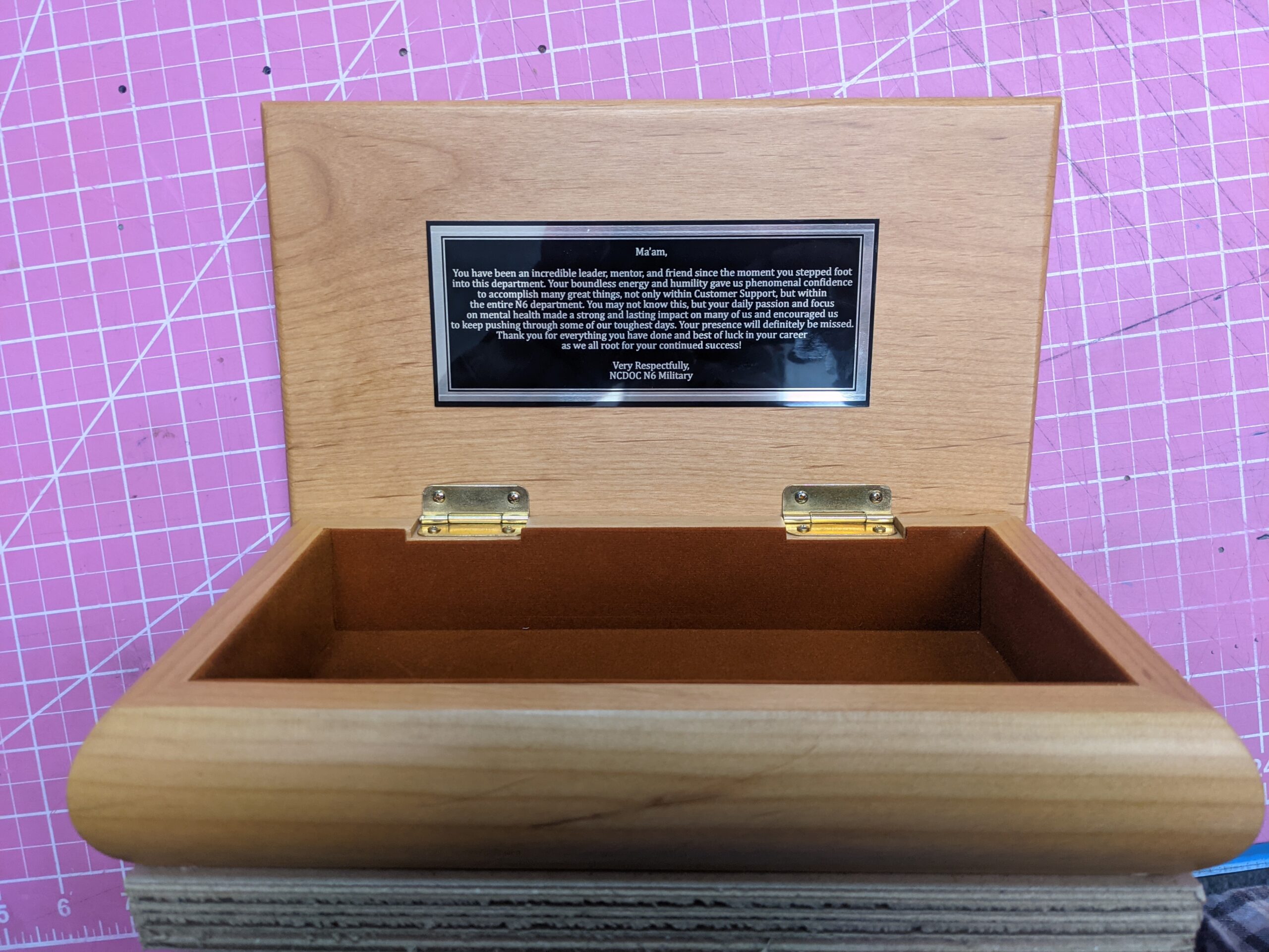 GORGEOUS NATURAL RED ALDER WOOD TRINKET BOX TO PUT YOUR COLLAR DEVICES, BELT BUCKLES, JEWELRY, OR ANYTHING ELSE INSIDE! (ITEMS SUGGESTED ARE NOT INCLUDED) YOU CAN PERSONALIZE THE LID AND EVEN ADD AN ENGRAVED PLATE INSIDE! ALL FOR THE INCLUDED PRICE!